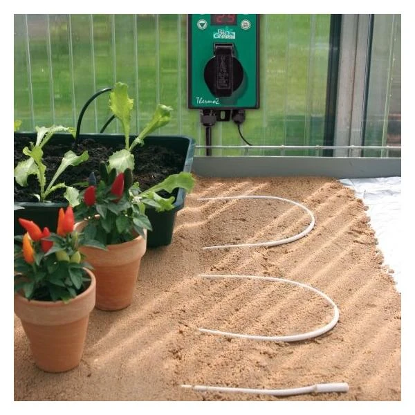 Bodemverwarmingskabels geven ook de nodige warmte voor de ontwikkeling van zaden en stekjes. Hij verhoogt de temperatuur van de aarde tussen de 8 en 12°C.